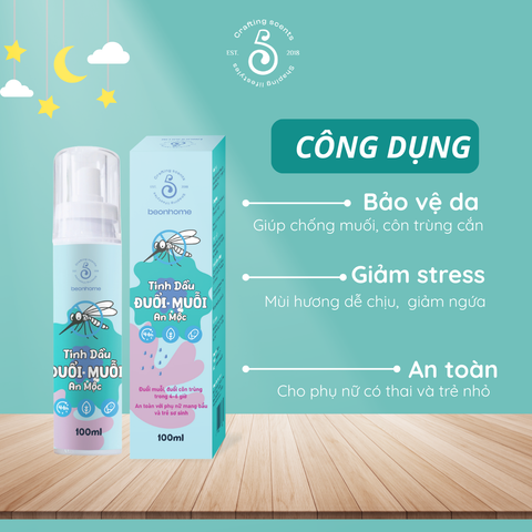 - Tinh dầu đuổi muỗi An Mộc với công thức xịt phun sương siêu mịn, thấm nhanh, không gây bết dính, cực kỳ tiện lợi khi sử dụng mỗi ngày.